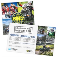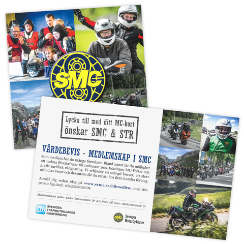 Genom ett samarbete mellan STR och SMC erbjuds mc-elever ett kostnadsfritt medlemskap hos SMC för innevarande år. Varje elev får ett värdebevis och en informationsfolder om SMC. Dela gärna ut värdebeviset redan vid inskrivning!